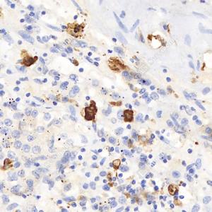 IHC检测eIF2B3蛋白(货号 GB114048). 样品: 人肝癌, 4%多聚甲醛 (货号G1101) 固定12-24小时. 抗原修复: 柠檬酸抗原修复液(干粉, pH 6.0) (G1201), 98℃, 20分钟. —抗: 1: 1500稀释, 4℃ 孵育过夜. 二抗: HRP标记山羊抗兔IgG (H+L) (货号GB23303), 1: 200稀释, 室温孵育1小时. |