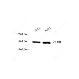 WB检测CLUH蛋白(货号 GB114097). 样品: 经RIPA裂解液(货号G2002)处理的蛋白质. 封闭: 封闭: 3%脱脂牛奶(货号GC310001)溶于TBST溶液, 室温孵育1小时. —抗: 1: 1000稀释, 4℃ 孵育过夜. 二抗: HRP标记山羊抗兔IgG (H+L) (货号GB23303), 1: 5000稀释, 室温孵育1小时. |
