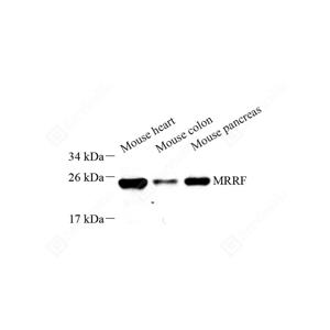 MRRF (mitochondrial ribosome recycling factor), also known as RRF, MRFF or MTRRF, is a 262 amino acid protein that belongs to the RRF (ribosome recycling factor) family.Responsible for the release of ribosomes from messenger RNA at the termination of protein biosynthesis. May increase the efficiency of translation by recycling ribosomes from one round of translation to another.