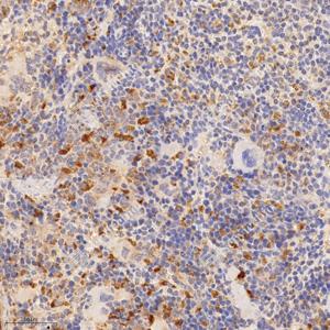 IHC检测HERC4蛋白(货号 GB114906). 样品: 小鼠脾, 4%多聚甲醛 (货号G1101) 固定12-24小时. 抗原修复: Tris-EDTA抗原修复液 (pH 9.0) (G1203), 98℃, 20分钟. —抗: 1: 800稀释, 4℃ 孵育过夜. 二抗: HRP标记山羊抗兔IgG (H+L) (货号GB23303), 1: 200稀释, 室温孵育1小时. |