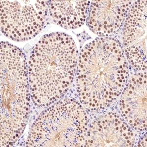 IHC检测PARC蛋白(货号 GB113044). 样品: 小鼠睾丸, 4%多聚甲醛 (货号G1101) 固定12-24小时. 抗原修复: 柠檬酸抗原修复液(干粉, pH 6.0) (G1201), 98℃, 20分钟. —抗: 1: 600稀释, 4℃ 孵育过夜. 二抗: HRP标记山羊抗兔IgG (H+L) (货号GB23303), 1: 200稀释, 室温孵育1小时. |