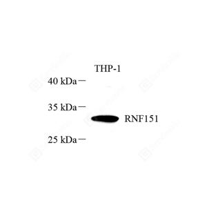 RNF151 also termed as ring finger protein 151 is a 245 amino acid protein, which contains one Ring-type zinc finger and one TRAF-type zinc finger. RNF151, with, a putative nuclear localization signal (NLS)was exclusively expressed in the mouse testis and developmentally regulated during spermatogenesis. While RNF151 mRNA was present in round spermatids, its protein was expressed in elongating spermatids of the stage VIII-IX seminiferous tubules.