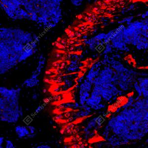 | IF检测Aggrecan蛋白(货号 GB115753)(红色). 样品: 小鼠软骨, 4%多聚甲醛 (货号G1101) 固定12-24小时. 抗原修复: Tris-EDTA抗原修复液(pH 9.0) (G1203), 98℃, 20分钟. 封闭: 3% BSA(货号GC305010)的PBS溶液, 室温孵育30分钟. —抗: 1: 1000稀释, 4℃ 孵育过夜. 二抗: Cy3标记山羊抗兔IgG (H+L) (货号GB21303), 1: 300稀释, 室温孵育1小时. |
