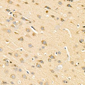 IHC检测IOP2蛋白(货号 GB11748). 样品: 大鼠脑, 4%多聚甲醛 (货号G1101) 固定12-24小时. 抗原修复: 柠檬酸抗原修复液(干粉, pH 6.0) (G1201), 98℃, 20分钟. —抗: 1: 3000稀释, 4℃ 孵育过夜. 二抗: HRP标记山羊抗兔IgG (H+L) (货号GB23303), 1: 200稀释, 室温孵育1小时. |