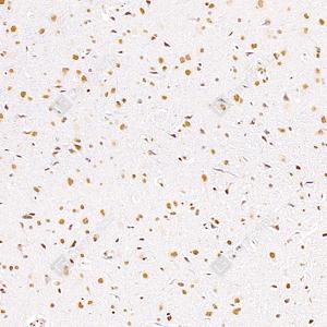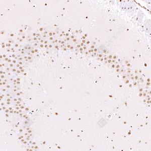 IHC检测NUP133蛋白(货号 GB112694). 样品: 大鼠黑质, 4%多聚甲醛 (货号G1101) 固定12-24小时. 抗原修复: 柠檬酸抗原修复液(干粉, pH 6.0) (G1201), 98℃, 20分钟. —抗: 1: 800稀释, 4℃ 孵育过夜. 二抗: HRP标记山羊抗兔IgG (H+L) (货号GB23303), 1: 200稀释, 室温孵育1小时. |