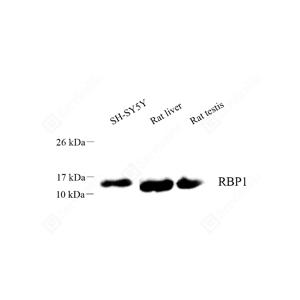 WB检测RBP1蛋白(货号 GB111987). 样品: 经RIPA裂解液(货号G2002)处理的蛋白质. 封闭: 封闭: 3%脱脂牛奶(货号GC310001)溶于TBST溶液, 室温孵育1小时. —抗: 1: 500稀释, 4℃ 孵育过夜. 二抗: HRP标记山羊抗兔IgG (H+L) (货号GB23303), 1: 5000稀释, 室温孵育1小时. |