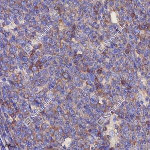 IHC检测RPL10蛋白(货号 GB113267). 样品: 人扁桃体, 4%多聚甲醛 (货号G1101) 固定12-24小时. 抗原修复: 柠檬酸抗原修复液(干粉, pH 6.0) (G1201), 98℃, 20分钟. —抗: 1: 2000稀释, 4℃ 孵育过夜. 二抗: HRP标记山羊抗兔IgG (H+L) (货号GB23303), 1: 200稀释, 室温孵育1小时. |