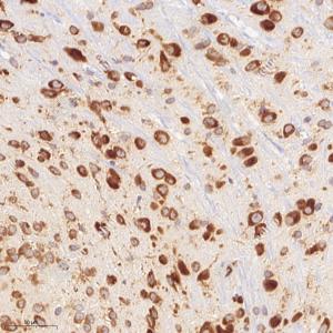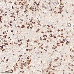 IHC检测RPL10蛋白(货号 GB113267). 样品: 小鼠脑, 4%多聚甲醛 (货号G1101) 固定12-24小时. 抗原修复: 柠檬酸抗原修复液(干粉, pH 6.0) (G1201), 98℃, 20分钟. —抗: 1: 1200稀释, 4℃ 孵育过夜. 二抗: HRP标记山羊抗兔IgG (H+L) (货号GB23303), 1: 200稀释, 室温孵育1小时. |