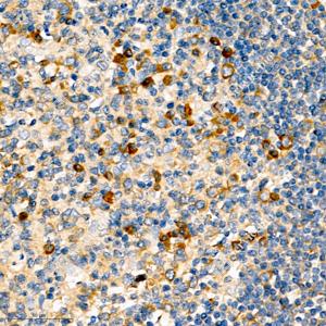 IHC检测RPS3蛋白(货号 GB111238). 样品: 人扁桃体, 4%多聚甲醛 (货号G1101) 固定12-24小时. 抗原修复: 柠檬酸抗原修复液(干粉, pH 6.0) (G1201), 98℃, 20分钟. —抗: 1: 850稀释, 4℃ 孵育过夜. 二抗: HRP标记山羊抗兔IgG (H+L) (货号GB23303), 1: 200稀释, 室温孵育1小时. |