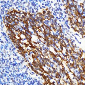 IHC检测Cytokeratin 7蛋白(货号 GB115695). 样品: 人扁桃体, 4%多聚甲醛 (货号G1101) 固定12-24小时. 抗原修复: 柠檬酸抗原修复液(干粉, pH 6.0) (G1201), 98℃, 20分钟. —抗: 1: 1000稀释, 4℃ 孵育过夜. 二抗: HRP标记山羊抗兔IgG (H+L) (货号GB23303), 1: 200稀释, 室温孵育1小时. |