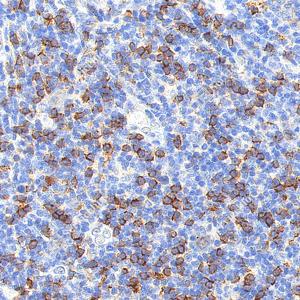 | IHC检测CD8 alpha蛋白(货号 GB154196). 样品: 人扁桃体, 4%多聚甲醛 (货号G1101) 固定12-24小时. 抗原修复: 柠檬酸抗原修复液(干粉, pH 6.0) (G1201), 高压锅均匀喷气计时2分钟. —抗: 1: 500稀释, 4℃ 孵育过夜. 二抗: S-vision免疫组化多聚二抗(山羊抗小鼠), 即用型(货号G1301), 室温孵育20分钟. |