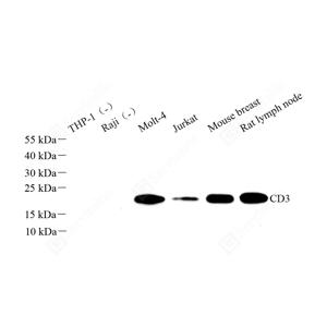 | WB 免疫印迹 | 人, 小鼠, 大鼠 | 1: 500-1: 1000 | JurKat细胞, 乳腺, 淋巴结 |