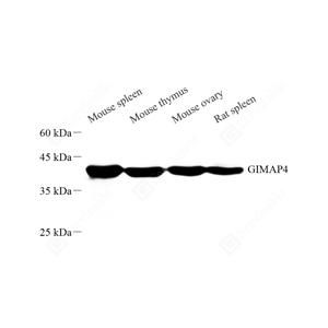 GIMAP4, also named as hIAN1 or HIMAP4, is a member of GIMAP family. Among GIMAP family, GIMAP4 is the only member reported to have true GTPase activity, and its transcription is found to be differentially regulated during early human CD4+ T helper (Th) lymphocyte differentiation. GIMAP4 has been previously connected mainly with T- and B-cell development and survival and T-cell apoptosis.