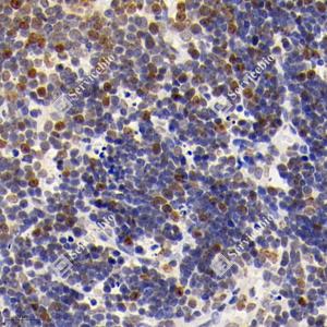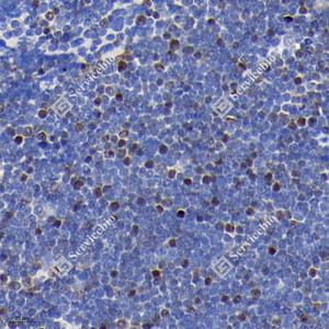 IHC检测MLLT11蛋白(货号 GB113560). 样品: 小鼠胸腺, 4%多聚甲醛 (货号G1101) 固定12-24小时. 抗原修复: 柠檬酸抗原修复液(干粉, pH 6.0) (G1201), 98℃, 20分钟. —抗: 1: 2000稀释, 4℃ 孵育过夜. 二抗: HRP标记山羊抗兔IgG (H+L) (货号GB23303), 1: 200稀释, 室温孵育1小时. |
