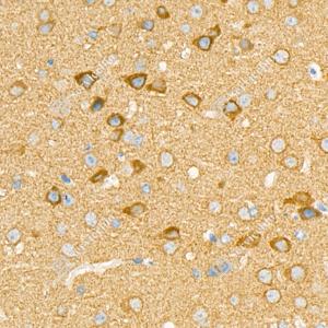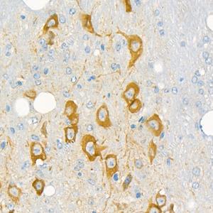 IHC检测RTN3/HAP蛋白(货号 GB114482). 样品: 小鼠脑, 4%多聚甲醛 (货号G1101) 固定12-24小时. 抗原修复: 柠檬酸抗原修复液(干粉, pH 6.0) (G1201), 98℃, 20分钟. —抗: 1: 1000稀释, 4℃ 孵育过夜. 二抗: HRP标记山羊抗兔IgG (H+L) (货号GB23303), 1: 200稀释, 室温孵育1小时. |