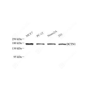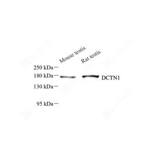 DCTN1, also named as DAP-150, p150-glued and p135, belongs to the dynactin 150 kDa subunit family. It is required for the cytoplasmic dynein-driven retrograde movement of vesicles and organelles along microtubules. Dynein-dynactin interaction is a key component of the mechanism of axonal transport of vesicles and organelles. Defects in DCTN1 are the cause of distal hereditary motor neuronopathy type 7B (HMN7B). This antibody is specific to DCTN1.