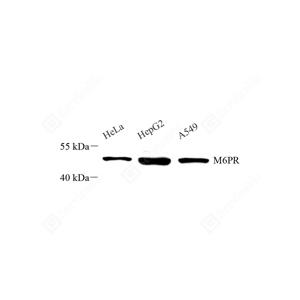 WB检测M6PR蛋白(货号 GB114577). 样品: 经RIPA裂解液(货号G2002)处理的蛋白质. 封闭: 封闭: 3%脱脂牛奶(货号GC310001)溶于TBST溶液, 室温孵育1小时. —抗: 1: 500稀释, 4℃ 孵育过夜. 二抗: HRP标记山羊抗兔IgG (H+L) (货号GB23303), 1: 5000稀释, 室温孵育1小时. |
