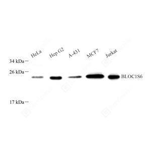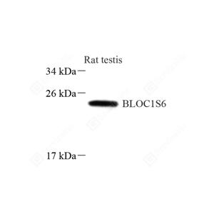 WB检测Pallidin蛋白(货号 GB113526). 样品: 经RIPA裂解液(货号G2002)处理的蛋白质. 封闭: 封闭: 3%脱脂牛奶(货号GC310001)溶于TBST溶液, 室温孵育1小时. —抗: 1: 800稀释, 4℃ 孵育过夜. 二抗: HRP标记山羊抗兔IgG (H+L) (货号GB23303), 1: 5000稀释, 室温孵育1小时. |