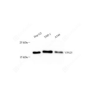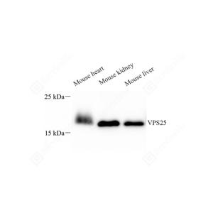 VPS25 is a component of the endosome-associated complex ESCRT-II (Endosomal Sorting Complexes Required for Transport protein II). ESCRT-II complex, composed of VPS25, VPS36, and SNF8, functions in sorting of ubiquitinated membrane proteins during endocytosis. ESCRT-II complex is probably involved in the recruitment of the ESCRT-III complex. VPS25 is highly conserved. Human VPS25 gene maps to chromosome 17q21.31 and is expressed in a wide range of tissues (PMID: 16889659).