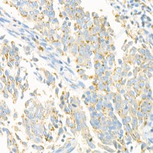 IHC检测VPS28蛋白(货号 GB114446). 样品: 人结肠癌, 4%多聚甲醛 (货号G1101) 固定12-24小时. 抗原修复: 柠檬酸抗原修复液(干粉, pH 6.0) (G1201), 98℃, 20分钟. —抗: 1: 2000稀释, 4℃ 孵育过夜. 二抗: HRP标记山羊抗兔IgG (H+L) (货号GB23303), 1: 200稀释, 室温孵育1小时. |