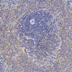 | IHC检测GAPDH蛋白(货号 GB12002). 样品: 大鼠脾, 4%多聚甲醛 (货号G1101) 固定12-24小时. 抗原修复: 柠檬酸抗原修复液(干粉, pH 6.0) (G1201), 高压锅均匀喷气计时2分钟. —抗: 1: 200稀释, 4℃ 孵育过夜. 二抗: HRP标记山羊抗小鼠IgG (H+L) (货号GB23301), 1: 200稀释, 室温孵育1小时. |