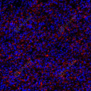 IF检测alpha Tubulin蛋白(货号 GB12200)(红色). 样品: 人肾, 4%多聚甲醛 (货号G1101) 固定12-24小时. 抗原修复: 柠檬酸抗原修复液(干粉, pH 6.0) (G1201), 高压锅均匀喷气计时2分钟. 封闭: 3% BSA(货号GC305010)的PBS溶液, 室温孵育30分钟. —抗: 1: 2000稀释, 4℃ 孵育过夜. 二抗: Cy3标记山羊抗小鼠IgG (H+L) (货号GB21301), 1: 300稀释, 室温孵育1小时. |