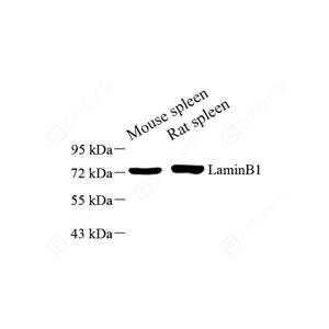WB检测Lamin B1蛋白(货号 GB111802). 样品: 经RIPA裂解液(货号G2002)处理的蛋白质. 封闭: 3%脱脂牛奶(货号GC310001)溶于TBST溶液, 室温孵育1小时. —抗: 1: 500稀释, 4℃ 孵育过夜. 二抗: HRP标记山羊抗兔IgG (H+L) (货号GB23303), 1: 5000稀释, 室温孵育1小时. |