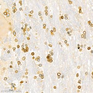 IHC检测Lamin B1蛋白(货号 GB111802). 样品: 大鼠脑, 4%多聚甲醛 (货号G1101) 固定12-24小时. 抗原修复: 柠檬酸抗原修复液(干粉, pH 6.0) (G1201), 98℃, 20分钟. —抗: 1: 300稀释, 4℃ 孵育过夜. 二抗: HRP标记山羊抗兔IgG (H+L) (货号GB23303), 1: 200稀释, 室温孵育1小时. |