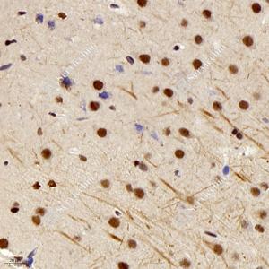 | IHC检测HDAC1蛋白(货号 GB11333). 样品: 大鼠脑, 4%多聚甲醛 (货号G1101) 固定12-24小时. 抗原修复: 柠檬酸抗原修复液(干粉, pH 6.0) (G1201), 98℃, 20分钟. —抗: 1: 300稀释, 4℃ 孵育过夜. 二抗: HRP标记山羊抗兔IgG (H+L) (货号GB23303), 1: 200稀释, 室温孵育1小时. |