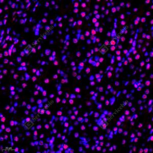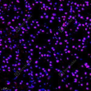 | IF检测HDAC1蛋白(货号 GB11333)(红色). 样品: 小鼠肝, 4%多聚甲醛 (货号G1101) 固定12-24小时. 抗原修复: Tris-EDTA抗原修复液(pH 9.0) (G1203), 98℃, 20分钟. 封闭: 3% BSA(货号GC305010)的PBS溶液, 室温孵育30分钟. —抗: 1: 200稀释, 4℃ 孵育过夜. 二抗: Cy3标记山羊抗兔IgG (H+L) (货号GB21303), 1: 300稀释, 室温孵育1小时. |