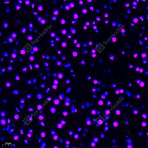 | IF检测HDAC1蛋白(货号 GB11333)(红色). 样品: 小鼠肾, 4%多聚甲醛 (货号G1101) 固定12-24小时. 抗原修复: Tris-EDTA抗原修复液(pH 9.0) (G1203), 98℃, 20分钟. 封闭: 3% BSA(货号GC305010)的PBS溶液, 室温孵育30分钟. —抗: 1: 200稀释, 4℃ 孵育过夜. 二抗: Cy3标记山羊抗兔IgG (H+L) (货号GB21303), 1: 300稀释, 室温孵育1小时. |
