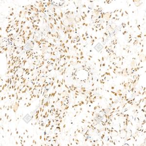 | IHC检测HDAC1蛋白(货号 GB12333). 样品: 人卵巢癌, 4%多聚甲醛 (货号G1101) 固定12-24小时. 抗原修复: 柠檬酸抗原修复液(干粉, pH 6.0) (G1201), 高压锅均匀喷气计时2分钟. —抗: 1: 1000稀释, 4℃ 孵育过夜. 二抗: HRP标记山羊抗小鼠IgG (H+L) (货号GB23301), 1: 200稀释, 室温孵育1小时. |