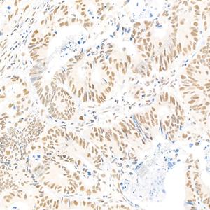 | IHC检测HDAC1蛋白(货号 GB12333). 样品: 人结肠癌, 4%多聚甲醛 (货号G1101) 固定12-24小时. 抗原修复: 柠檬酸抗原修复液(干粉, pH 6.0) (G1201), 高压锅均匀喷气计时2分钟. —抗: 1: 1000稀释, 4℃ 孵育过夜. 二抗: HRP标记山羊抗小鼠IgG (H+L) (货号GB23301), 1: 200稀释, 室温孵育1小时. |
