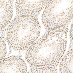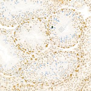 | IHC检测HDAC1蛋白(货号 GB12333). 样品: 小鼠睾丸, 4%多聚甲醛 (货号G1101) 固定12-24小时. 抗原修复: 柠檬酸抗原修复液(干粉, pH 6.0) (G1201), 高压锅均匀喷气计时2分钟. —抗: 1: 1000稀释, 4℃ 孵育过夜. 二抗: HRP标记山羊抗小鼠IgG (H+L) (货号GB23301), 1: 200稀释, 室温孵育1小时. |