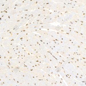 | IHC检测HDAC1蛋白(货号 GB12333). 样品: 小鼠心, 4%多聚甲醛 (货号G1101) 固定12-24小时. 抗原修复: 柠檬酸抗原修复液(干粉, pH 6.0) (G1201), 高压锅均匀喷气计时2分钟. —抗: 1: 1000稀释, 4℃ 孵育过夜. 二抗: HRP标记山羊抗小鼠IgG (H+L) (货号GB23301), 1: 200稀释, 室温孵育1小时. |