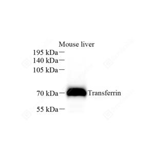 | WB检测Transferrin蛋白(货号 ZB111312-HRP). 样品: 经RIPA裂解液(货号G2002)处理的蛋白质. 封闭: 3%脱脂牛奶(货号GC310001)溶于TBST溶液, 室温孵育1小时. 抗体: HRP标记的抗Transferrin蛋白 抗体 1: 500稀释, 4℃ 孵育过夜. |