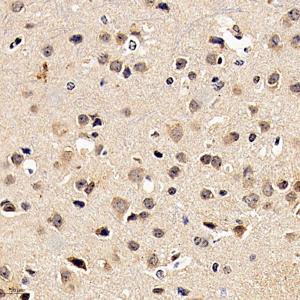| IHC检测Superoxide Dismutase 1 蛋白(货号 GB11263). 样品: 小鼠脑, 4%多聚甲醛 (货号G1101) 固定12-24小时. 抗原修复: 柠檬酸抗原修复液(干粉, pH 6.0) (G1201), 高压锅均匀喷气计时2分钟. —抗: 1: 300稀释, 4℃ 孵育过夜. 二抗: HRP标记山羊抗兔IgG (H+L) (货号GB23303), 1: 200稀释, 室温孵育1小时. |