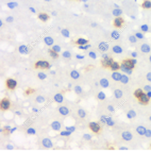 | IHC检测Superoxide Dismutase 1 蛋白(货号 GB11263). 样品: 人肝, 4%多聚甲醛 (货号G1101) 固定12-24小时. 抗原修复: 柠檬酸抗原修复液(干粉, pH 6.0) (G1201), 高压锅均匀喷气计时2分钟. —抗: 1: 300稀释, 4℃ 孵育过夜. 二抗: HRP标记山羊抗兔IgG (H+L) (货号GB23303), 1: 200稀释, 室温孵育1小时. |