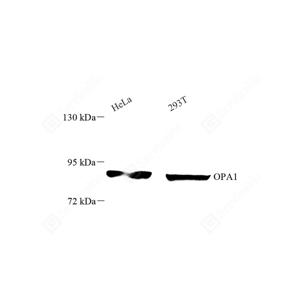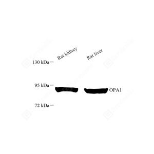 WB检测OPA1蛋白(货号 GB111728). 样品: 经RIPA裂解液(货号G2002)处理的蛋白质. 封闭: 封闭: 3%脱脂牛奶(货号GC310001)溶于TBST溶液, 室温孵育1小时. —抗: 1: 500稀释, 4℃ 孵育过夜. 二抗: HRP标记山羊抗兔IgG (H+L) (货号GB23303), 1: 5000稀释, 室温孵育1小时. |