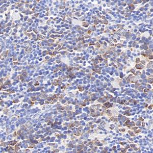 IHC检测MT-ND1蛋白(货号 GB113284). 样品: 大鼠脾, 4%多聚甲醛 (货号G1101) 固定12-24小时. 抗原修复: 柠檬酸抗原修复液(干粉, pH 6.0) (G1201), 高压锅均匀喷气计时2分钟. —抗: 1: 1000稀释, 4℃ 孵育过夜. 二抗: HRP标记山羊抗兔IgG (H+L) (货号GB23303), 1: 200稀释, 室温孵育1小时. |