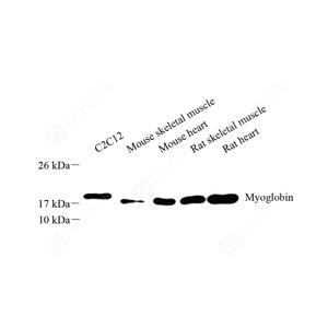 | WB检测Myoglobin蛋白(货号 GB11942). 样品: 经RIPA裂解液(货号G2002)处理的蛋白质. 封闭: 封闭: 3%脱脂牛奶(货号GC310001)溶于TBST溶液, 室温孵育1小时. —抗: 1: 500稀释, 4℃ 孵育过夜. 二抗: HRP标记山羊抗兔IgG (H+L) (货号GB23303), 1: 5000稀释, 室温孵育1小时. |