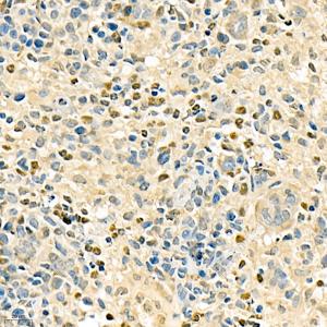 IHC检测NCF1/p47-phox蛋白(货号 GB11724). 样品: 小鼠脾炎, 4%多聚甲醛 (货号G1101) 固定12-24小时. 抗原修复: 柠檬酸抗原修复液(干粉, pH 6.0) (G1201), 98℃, 20分钟. —抗: 1: 400稀释, 4℃ 孵育过夜. 二抗: HRP标记山羊抗兔IgG (H+L) (货号GB23303), 1: 200稀释, 室温孵育1小时. |