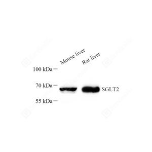 WB检测SGLT2蛋白(货号 GB114335). 样品: 经RIPA裂解液(货号G2002)处理的蛋白质. 封闭: 封闭: 3%脱脂牛奶(货号GC310001)溶于TBST溶液, 室温孵育1小时. —抗: 1: 1000稀释, 4℃ 孵育过夜. 二抗: HRP标记山羊抗兔IgG (H+L) (货号GB23303), 1: 5000稀释, 室温孵育1小时. |