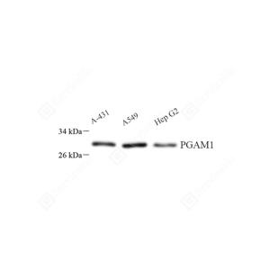 PGAM1(phosphoglycerate mutase 1) is also named as PGAMA,PGAM-B and belongs to the phosphoglycerate mutase family. Phosphoglycerate mutase is widely distributed in mammalian tissues where it catalyzes the reversible reaction of 3-phosphoglycerate (3-PGA) to 2-phosphoglycerate (2-PGA) in the glycolytic pathway. The homodimer PGAM1 is expressed mainly in liver, kidney, brain and overexpressed in a variety of human cancers, including breast carcinoma, colorectal cancer, lung cancer, prostate cancer, oral squamous cell carcinoma, esophageal squamous cell carcinomas and also associated with certain virus infection.
