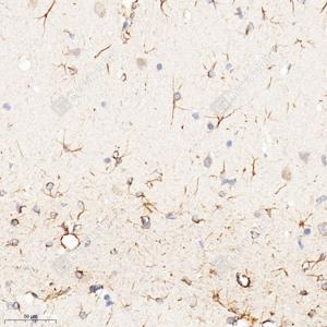 IHC检测Adenylate cyclase 1/AC1蛋白(货号 GB111779). 样品: 小鼠脑, 4%多聚甲醛 (货号G1101) 固定12-24小时. 抗原修复: 柠檬酸抗原修复液(干粉, pH 6.0) (G1201), 98℃, 20分钟. —抗: 1: 650稀释, 4℃ 孵育过夜. 二抗: HRP标记山羊抗兔IgG (H+L) (货号GB23303), 1: 200稀释, 室温孵育1小时. |