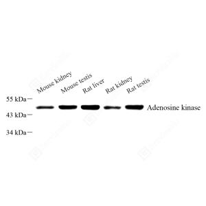 WB检测ADK蛋白(货号 GB112419). 样品: 经RIPA裂解液(货号G2002)处理的蛋白质. 封闭: 3%脱脂牛奶(货号GC310001)溶于TBST溶液, 室温孵育1小时. —抗: 1: 1000稀释, 4℃ 孵育过夜. 二抗: HRP标记山羊抗兔IgG (H+L) (货号GB23303), 1: 5000稀释, 室温孵育1小时. |