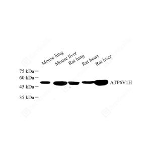 WB检测ATP6V1H蛋白(货号 GB111424). 样品: 经RIPA裂解液(货号G2002)处理的蛋白质. 封闭: 封闭: 3%脱脂牛奶(货号GC310001)溶于TBST溶液, 室温孵育1小时. —抗: 1: 500稀释, 4℃ 孵育过夜. 二抗: HRP标记山羊抗兔IgG (H+L) (货号GB23303), 1: 5000稀释, 室温孵育1小时. |