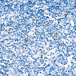 IHC检测Carbonic Anhydrase 13/CA13蛋白(货号 GB111811). 样品: 小鼠胸腺, 4%多聚甲醛 (货号G1101) 固定12-24小时. 抗原修复: 柠檬酸抗原修复液(干粉, pH 6.0) (G1201), 98℃, 20分钟. —抗: 1: 400稀释, 4℃ 孵育过夜. 二抗: HRP标记山羊抗兔IgG (H+L) (货号GB23303), 1: 200稀释, 室温孵育1小时. |