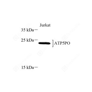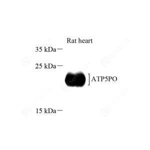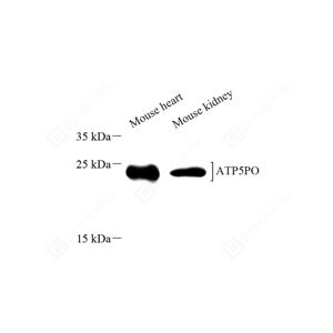 WB检测ATP5O蛋白(货号 GB114766). 样品: 经RIPA裂解液(货号G2002)处理的蛋白质. 封闭: 封闭: 3%脱脂牛奶(货号GC310001)溶于TBST溶液, 室温孵育1小时. —抗: 1: 300稀释, 4℃ 孵育过夜. 二抗: HRP标记山羊抗兔IgG (H+L) (货号GB23303), 1: 5000稀释, 室温孵育1小时. |