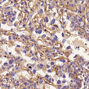 IHC检测B3GALNT1蛋白(货号 GB115200). 样品: 人肾, 4%多聚甲醛 (货号G1101) 固定12-24小时. 抗原修复: Tris-EDTA抗原修复液(pH 9.0) (G1203), 98℃, 20分钟. —抗: 1: 700稀释, 4℃ 孵育过夜. 二抗: HRP标记山羊抗兔IgG (H+L) (货号GB23303), 1: 200稀释, 室温孵育1小时. |